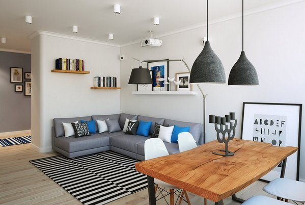 - Маленькие детали. В некоторых стилях – минимализм, современность, шведский лагом – отсутствие лишних деталей становится фишкой, но даже они предполагают несколько интересных акцентов. Используйте постеры, картины, молдинги, потолочные балки, комбинации разных отделочных материалов: пусть дизайн смотрится интересно и гармонично.