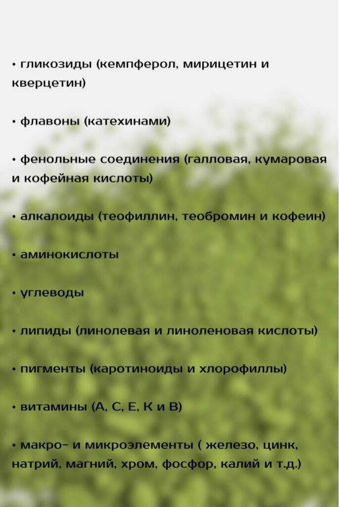 Ни для кого не секрет, что чай является одним из самых популярных напитков мира. В восточных странах процедура создания чайного напитка и его прием – целый ритуал, которому могут посвящаться целые часы. Но вы знали, что чай можно использовать и в ритуалах красоты? Конечно мы сейчас говорим не о том, чтобы прикладывать пакетик чая под глаза… Дочитывай статью до конца, чтобы узнать о чайных компонентах в косметической продукции! Из чего же состоит чай? Чайное растение является богатым источником биологически активных компонентов. По данным научной литературы, он содержит почти 4000 метаболитов. Примерный состав представлен на картинке ниже: Процентное содержание биологически активных веществ зависит от вида чая и его экстракции (настойка, сухой порошок и т.д.). Например, концентрация катехинов (простые флавоноиды) в свежих листьях зеленого чая наивысшая. Состав конечно внушительный, давайте теперь разберемся, чем он будет полезен для кожи. МОЩНЫЙ АНТИОКСИДАНТ Поскольку окислительный стр