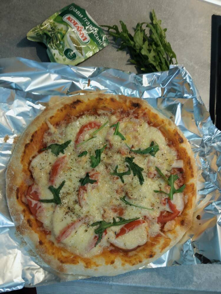 Піца на заквасці,, якщо ви маєте житню або пшеничну закваску,то обов'язково спробуйте! Хто любить працювати з тістом а особливо із закваскою,це для вас)))) Ингредиенты: закваски (пшенична або житня), води, пшеничного борошна, води, пшеничного борошна, сіль, олії, Начинка на ваш вибір ))) Способ приготовления: Приготуйте опару. З'єднайте закваску,воду (50г) борошно (50г). Змішайте поставте в тепле місце на 5 год (на ніч) В опару додайте воду і борошно, змішайте лопаткою залиште на 30 хв Додайте сіль олію,відбийте тісто доти щоб розстала сіль Залиште на 1 год, розгорніть тісто і зложіть в конверт, залиште на 1 год Зробіть кульки,залиште на столі на 30хв Сформуйте заготовку для піц,виложіть начинку. Випікайте при 200'С до готовності, посипте сиром. Готово!!!