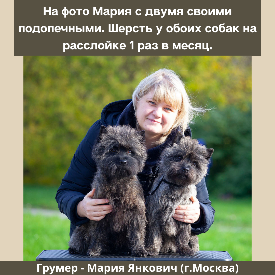 ❗️ Если вы планируете показывать свою собаку на выставках или просто хотите гулять со своим керном всегда с красивой «причёской», то лучше посещать породного грумера 1 раз в месяц.⠀