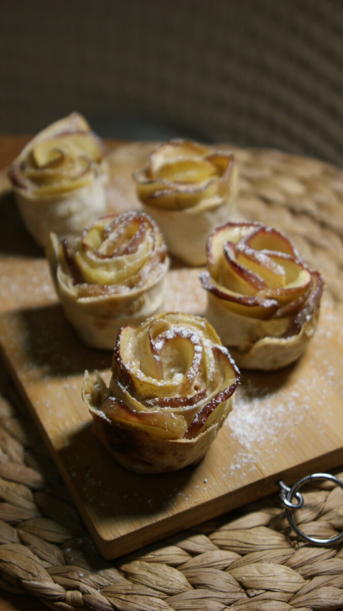 Случаются моменты когда хочется чего то вкусненького. И этого вкусненького хочется очень быстро. И еще одно требование чтобы это было полезно. На такой случай у меня есть предельно простой рецепт! Нам понадобится: ✔Тонкий лаваш - 150 г. ✔ Яблоки - 2 шт. (250 г.) ✔ Яйцо - 1шт. ✔ Корица - 1/3 ч.л. ✔ Мягкий творог - 125 г. ✔ Сах. зам/сахар - по вкусу. 1. Нарежем яблоки на тонкие слайсы. 2. Ставим на огонь кастрюлю с водой, добавляем туда сахар либо сах. зам. и варим наши яблоки да мягкости, приблизительно 5 минут. Затем высушиваем яблочные слайсы на бумажном полотенце. 3. Смешиваем мягкий творог, яйцо, корицу, сахар или сах.зам. 4.Нарезаем лаваш на полоски шириной 6 см. 5. Смазываем лаваш творожной массой, выкладываем яблоки как на фото. Накрываем свободным краем лаваша яблоки и сворачиваем в красивую розочку. 6. Розочки я поместила в формы для выпечки кексов. 7. Выпекаем 25 минут при температуре 180 градусов. Получается вот такая красота. Приятного аппетита!