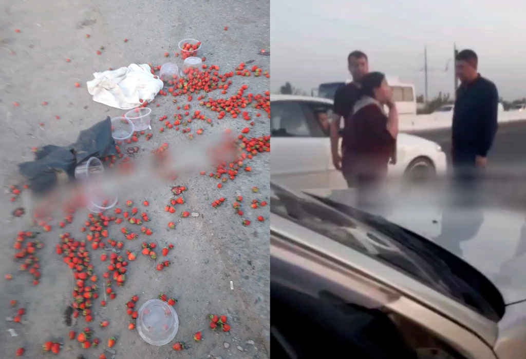 На трассе "Ташкент – Чирчик" произошел конфликт между правоохранителями и продавцами клубники. Видео