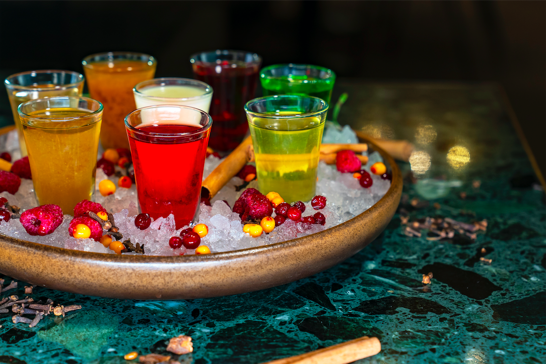 В ресторане The Bazar по классическому методу готовят настойки на мандаринах, киви с эстрагоном, фейхоа, апельсинах, клюкве и облепихе. Самые свежие ингредиенты настаиваются две недели без добавления химии и усилителей вкуса. В результате получается качественный и натуральный продукт. Помимо классики, для настаивания используется метод су-вид. С его помощью удается сохранить первозданный вкус и аромат фруктов и ягод. Но это еще не все. В меню ресторана The Bazar можно найти крепкую хреновуху и классиче