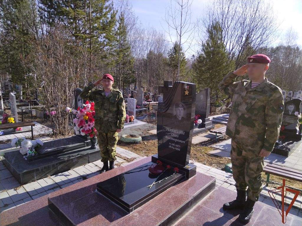 Росгвардейцы навели порядок на месте его захоронения и прилегающей территории, после чего воздали дань памяти минутой молчания.