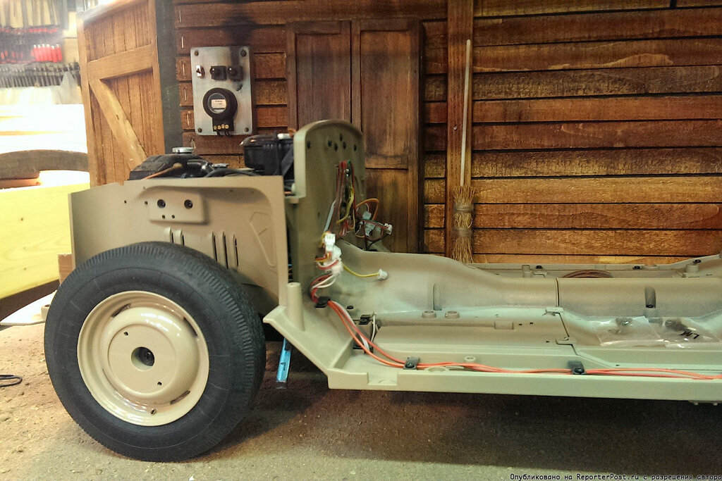 Автомобиль ГАЗ М-20 "Победа" который ребята строят в своем собственном гараже – в комнате... Я надеюсь, что вы поняли – это модель масштаба 1:8, которую Дима собирает из присланных деталей, но посмотрите на место, в котором стоит авто. Это вам не сервант или столик в комнате. Это настоящий гараж... Гараж еще в стадии строительства, но работы идут полным ходом. Например, надо сделать настоящие ржавые двери. Или сшить ватник, к которому приложилась женская рука Марины. Учитесь! Мало того, что девушка отпускает своего мужчину в гараж, она ему еще помогает его обустроить! Верх реализма – счетчик электричества со следами недавнего пожара... Когда проект будет завершен, придется напроситься в гости и отснять все это безобразие, которое рука не поднимается назвать играми в машинки. Сдается мне, чт