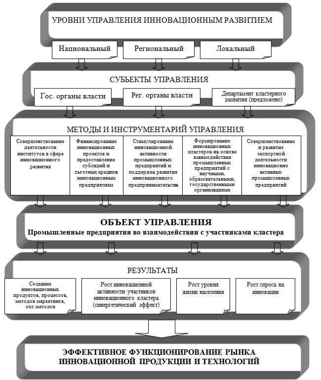 Развитие интеграционных процессов в инновационной сфере на основе формирования промышленно-инновационных кластеров позволяют максимально эффективно реализовать экономические интересы каждого участника инновационного процесса на основе использования конкурентных преимуществ в технологиях производства, управления, организации процесса продвижения инновационной продукции