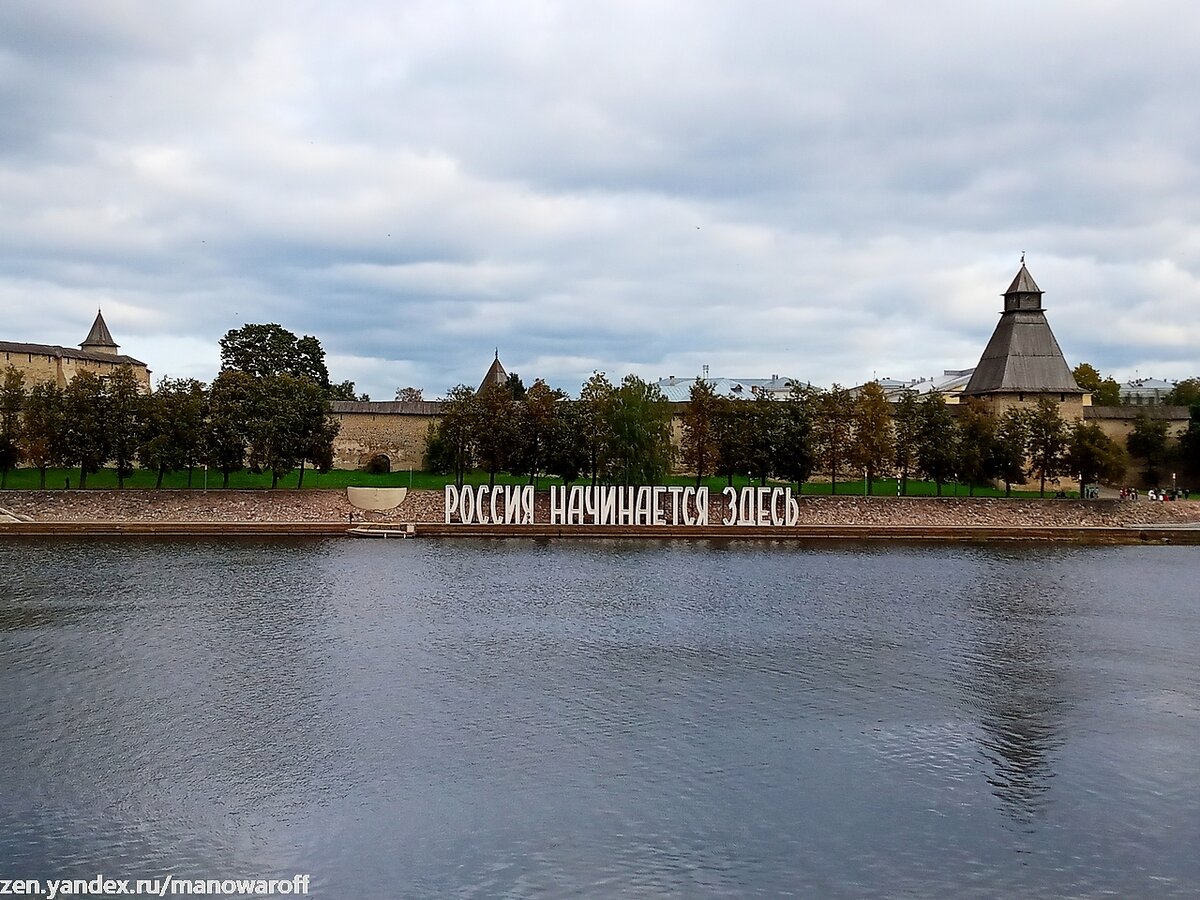 Расположен кремль на месте слияния рек Великая и Пскова. Великая, действительно, довольно широкая река, типа нашей Москвы-реки.