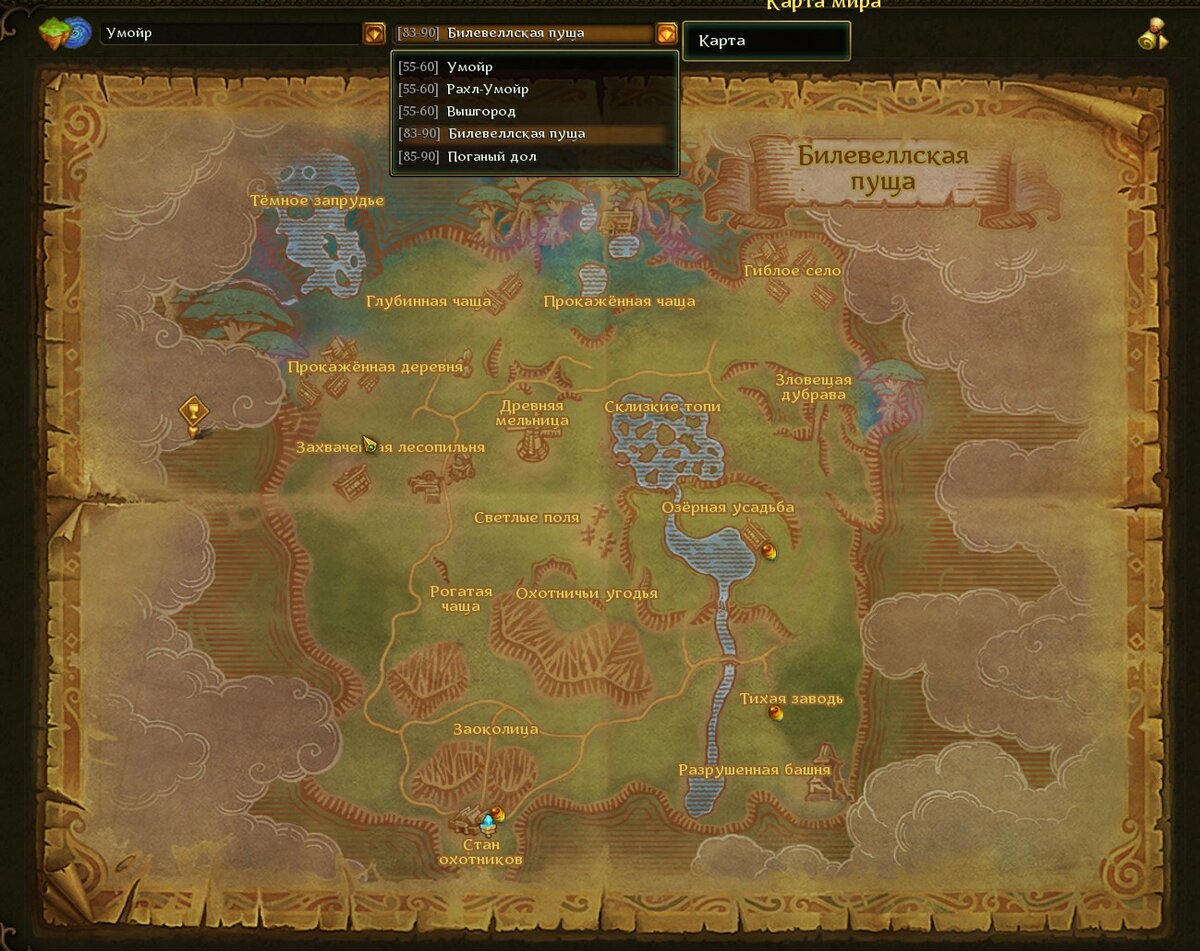 Самостоятельно открываем карту и меняем локацию на "Билевеллская пуща"