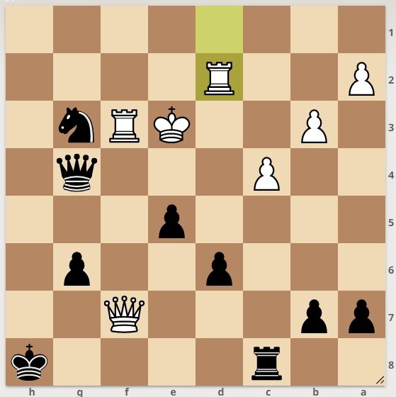 белые грозят неприятным шахом ладьи на h2. Но ход черных, черные начинают и получают решающий материальный перевес.
