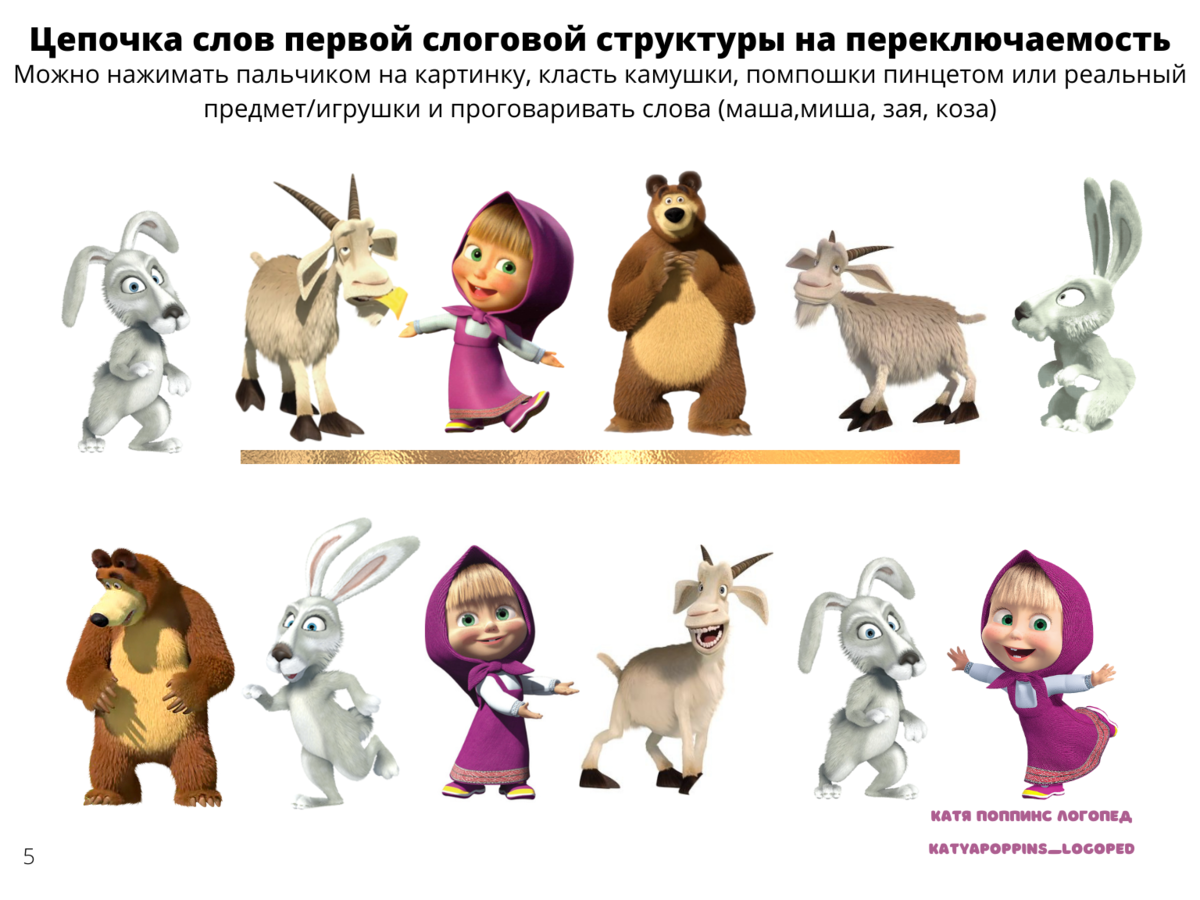 Слова, которые использованы входят в группу первого типа слоговой структуры. Это слова, состоящие из двух открытых слогов. Именно с них и начинается работа по запуску речи неговорящих детей, так как их легче всего произнести. Недаром, первым словом у многих деток является "Мама" и "папа". Эти слова также первого типа слоговой структуры. Пособие отлично подходит для домашнего использования с ребеночком. Называем предмет и кладем камушек или помпошку, и так до конца ряда. Если ребеночек не говорит, это не значит, что пособие не подходит. Наоборот, вы будете принимать роль оречевления каждого действия. И чем больше и чаще вы будете произносить каждое слово, тем быстрее оно войдет в пассивный, а затем активный словарь ребенка. С вами была логопед, Екатерина Полякова. До новых встреч.
