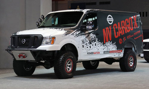 Ниссан решил показать, что можно сделать из обычного грузового фургона, если захотеть и приложить чуть-чуть фантазии и бюджета. На базе Nissan NV 2500HD при поддержке телевизионного шоу Xtreme Off-Road и ведущего Яна Джонсона, свет увидел внедорожный автобус, которому могут позавидовать многие мэтры жанра. Получивший название Nissan NV Cargo X автобус был изготовлен фактически из двух автомобилей. От NV внедорожнику досталась рама и кузов. Двигатель и трансмиссия взяты от выпускаемого серийно пикапа Nissan Titan — это турбодизель Cummins V8 объемом 5 литров, мощностью 310 л.с. и безумным крутящим моментом в 753Нм сочлененный с 6-ступенчатой автоматической коробкой передач. Штатная независимая передняя подвеска была выброшена, а вместо нее заняли свое место передний мост и усиленные амортизаторы. Усиленные амортизаторы и рессоры сменили и штатную заднюю подвеску. Мостовая схема по-прежнему остается актуальной для «тяжелых» внедорожников и не спешит сдаваться. В результате проведенных ра