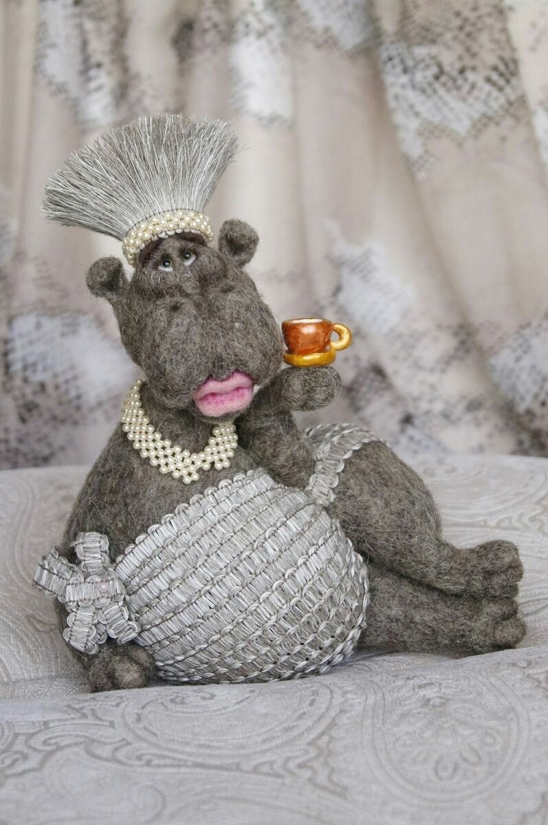 Третий мой бегемот ... Она. Зовут Брунильда . Почему такой образ, даже не знаю. Была сделана из кардачеса , в гладкой технике сухого валяния . Так же были сделаны и предыдущие мои бегемоты Тогда , в далеком 2015 г я только начинала свой путь и была в поиске своего 'стиля. Когда был сделан первый мой бегемот, потом 'вторые , а потом и третий, то я была уверена, что я буду делать целую коллекцию бегемотов 😁 Но уже после Брунильды планы мои поменялись! Продолжение следует...