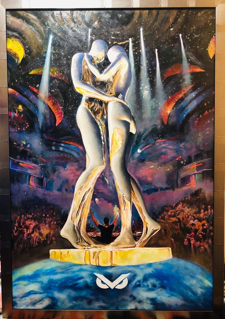 Картина-бессонница Добрый день, дорогие друзья! Мы представляем Вам еще одну наша работу на заказ — проект «Бессонница». Картина на мой взгляд, получилась «сильной» и «интересной», с философским смыслом. Перед нами пара, олицетворяющая мужчину и женщину. Они танцуют, стоя на земном шаре, вокруг множество людей, а они чувствуют себя абсолютно вдвоем, как-будто никого нет рядом. Они немного устали, у них - бессонница…. Они нравятся друг другу, возможно они были очень одинокими и наконец обрели друг друга… Есть моменты, в которых мы живем бесконечно… А затем — они бесконечно живут в нас. Эти жизненные моменты вспоминаются с особой добротой, улыбкой, теплом, душевным светом. Друзья, пусть у каждого человека на планете будет родная душа! Всем любви и добра!