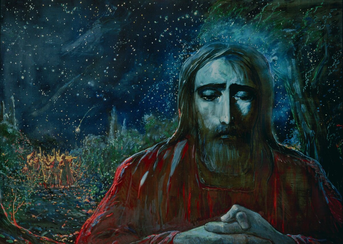 В этот день, мои дорогие, случилось многое. Христос умыл ноги ученикам, показывая свое смирение и что нам должно поступать так же. Также Он преломил хлеб и раздал ученикам, впервые сказав: "Примите, едите, сие есть Тело Мое, и, разлив вино, назвал его кровью... Все это было ново и непонятно ученикам. Впрочем, и мы, участвуя регулярно в таинстве Евхаристии, до конца не понимаем ее значения. Но сегодня хочу поговорить не об этом. После Тайной Вечери с учениками Христос отправился молиться в сад, называемый Гефсиманским. И был пот Его, как капли крови. С ним были ученики, но они спали. И им, конечно, было не понять всю ту скорбь, которую испытывал Христос в момент своего моления. Это было одиночество, оставленность. Это было сильнейшее испытание. Тем не менее, Он говорил: -Буди воля Твоя... Хотя и просил пронести Чашу мимо Него... Он знал, что вот сегодня пойдет на страдания. Я много раз пыталась поставить себя на Его место, чтобы как можно яснее прочувствовать страдания нашего Спасителя.