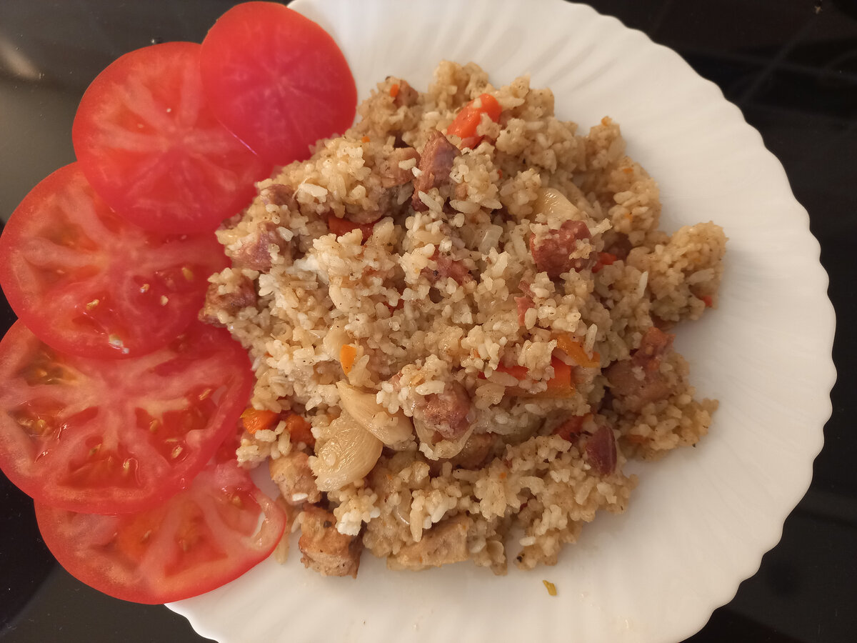 ДЛЯ ПРИГОТОВЛЕНИЯ ПЛОВА НАМ ПОТРЕБУЕТСЯ: ШАГ 1 НАРЕЗАЕМ МЯСО НА НЕБОЛЬШИЕ КУСОЧКИ И ОТПРАВЛЯЕМ В РАЗОГРЕТЫЙ КАЗАН МЯСО ОБЖАРИВАЕМ ДО ЗОЛОТИСТОЙ КОРОЧКИ ШАГ 2 ЛУК НАРЕЗАЕМ ПОЛУКОЛЬЦАМИ И ОТПРАВЛЯЕМ В КАЗАН К МЯСУ ВСЕ ПЕРЕМЕШИВАЕМ И ЖАРИМ МИНУТ 5 ШАГ 3 МОРКОВЬ НАРЕЗАЕМ БРУСКАМИ И ОТПРАВЛЯЕМ ТОЖЕ В КАЗАН К МЯСУ С ЛУКОМ ВСЕ ПЕРЕМЕШИВАЕМ И ЗАКРЫВАЕМ КРЫШКОЙ КАЗАН. ТУШИМ ПРИМЕРНО МИНУТ 10 ПРОШЛО 10 МИНУТ ТЕПЕРЬ МОЖНО ДОБАВИТЬ НАШУ ПРИПРАВУ. НУЖНО ПОСОЛИТЬ И ПОПЕРЧИТЬ НА МОЙ ВЗГЛЯД САМАЯ ВКУСНАЯ ПРИПРАВА. НАШЕЙ СЕМЬЕ ОЧЕНЬ НРАВИТСЯ ШАГ 4 РИС Я ПРОМЫЛА В ХОЛОДНОЙ ВОДЕ РИС ЗАРАНЕЕ ЗАМОЧИЛА В ВОДЕ ОТПРАВЛЯЕМ НАШ РИС К МЯСУ С ОВОЩАМИ РИС ЗАЛИВАЕМ ВОДОЙ, ВОДА ДОЛЖНА ПОКРЫТЬ РИС НА 2СМ ПРИМЕРНО ЗАКРЫТЬ КРЫШКОЙ КАЗАН. УБАВИТЬ ОГОНЬ ДО СРЕДНЕГО , ТУШИТЬ ДО ГОТОВНОСТИ РИСА. ГОТОВИМ ПРИМЕРНО 30 МИНУТ. ЗАТЕМ ВЫКЛЮЧАЕМ ПЛИТУ И ОСТАВЛЯЕМ НАШ ПЛОВ ЕЩЕ МИНУТ НА 20 НАШ ПЛОВ ГОТОВ. ВСЕМ ПРИЯТНОГО АППЕТИТА