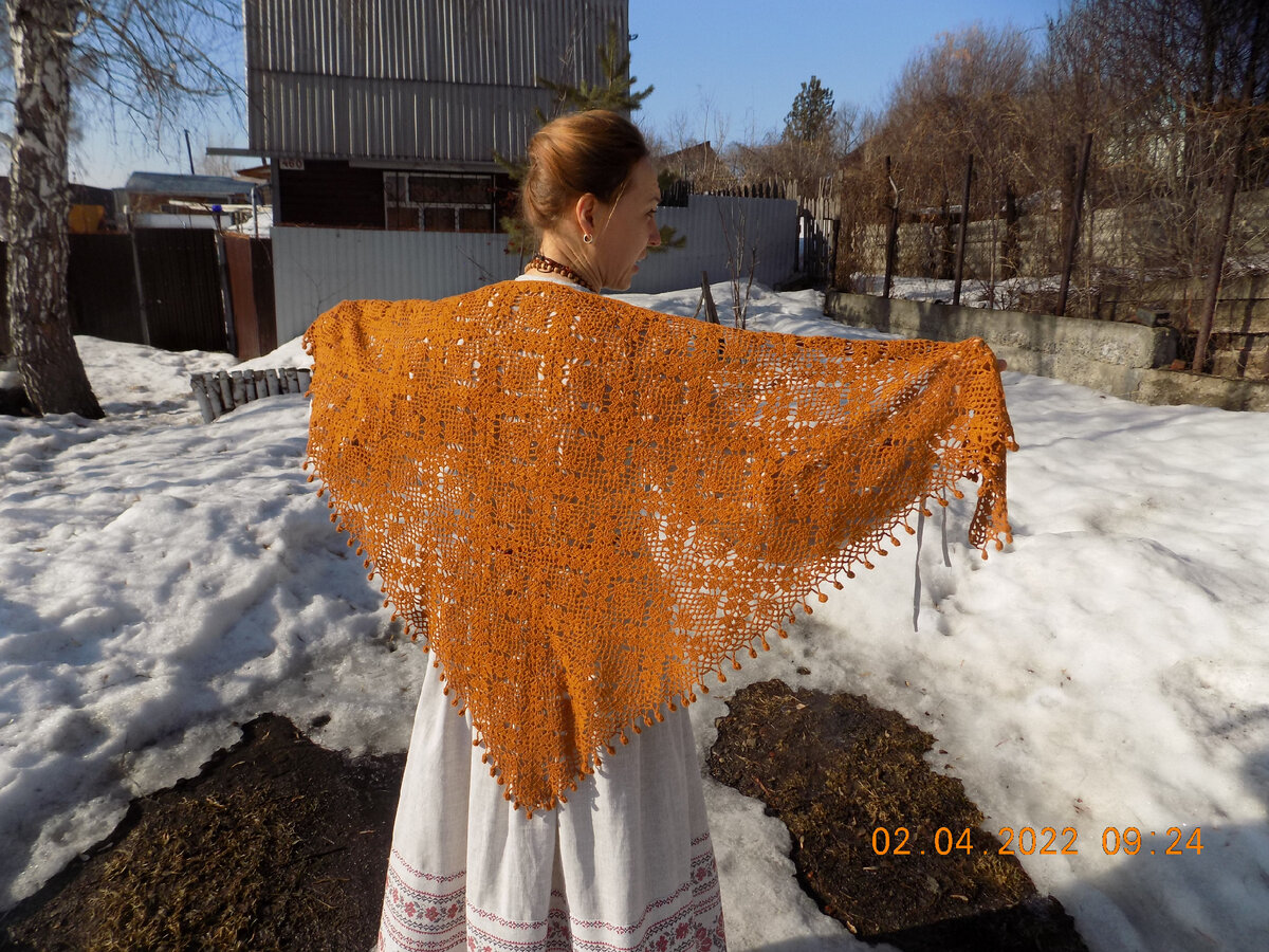 Вот и закончился проект. После себя оставил исключительно положительные, добрые, тёплые эмоции. Я успела связать два изделия. Шаль и небольшой бактус. Эмоции от проекта исключительно положительные, добрые и тёплые. Как наши вязанные шали). Когда вступала в проект, очень переживала, что не смогу справиться с мотивами, не получится их правильно соединить, очень долго колдовала над обвязкой, боялась, что не успею связать изделие до окончания проекта.... Страхов было море - тёмное и бушующее)). И вот они мои шали готовы. Для меня каждый раз чудо, как из нитки свёрнутой в клубок получаются вещи. Волшебство. Я очень многое преодолела, благодаря проекту, многому научилась, многое попробовала. Благодарю Светлану за предоставленную возможность участия в её вдохновляющем на подвиги проекте. Это очень здорово, что есть такие возможности. Очень боялась вязать из мотивов. Был у меня такой неудачный опыт. Всего один, но мне хватило. Об этом рассказываю в первой части. Совершенно не умела фото