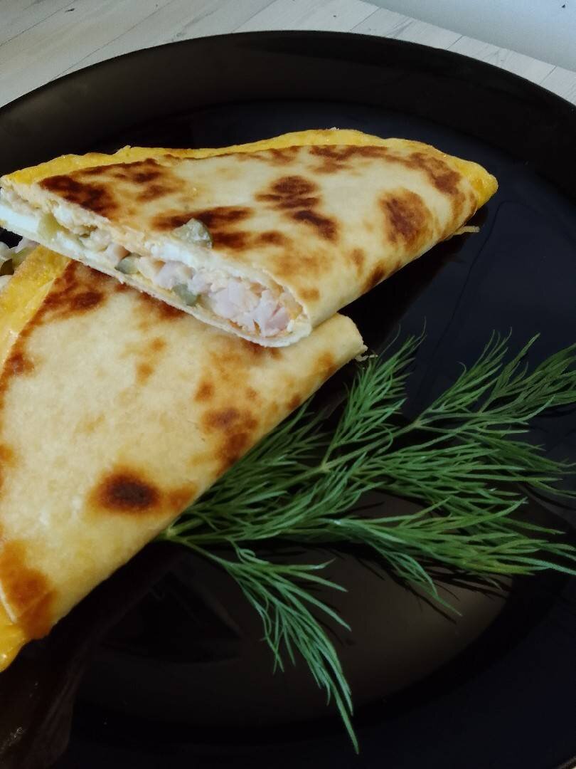 Лепешка, замечательная альтернатива дрожжевому хлебу. И если вы, как я, любите бутерброды, рецепт для вас. Внесите разнообразие и замените простой бутерброд на такую лепешку. Это не только красиво, но и очень вкусно. А ингредиенты,как для любого бутерброда и приготовить на раз, два, три .. #академия #закуски Ингредиенты: яйца, лепешка, твердого сыра, ветчины, маринованного огурчика, Масло для жарки Способ приготовления: Из яиц с помощью вилки сделать болтушку. Сковороду смазать маслом (к какому привыкли, без разницы). Вылить болтушку. Делаем всё на среднем огне. Яичный блинчик должен быть полуготовым. Примерно, через минуту накрываем яичный блинчик лепёшкой. И немного придавливает лопаткой. Ещё через минуту переворачиваем с помощью лопатки. Теперь всё делаем быстро, можно огонь уменьшить до самого маленького. На яйцо выкладываем тертый сыр. На сыр порезанную небольшими кусочками ветчину и огурчик. Лепёшку,прямо на сковороде сворачиваем пополам. Опять хорошо придавливаем лопаткой. И про