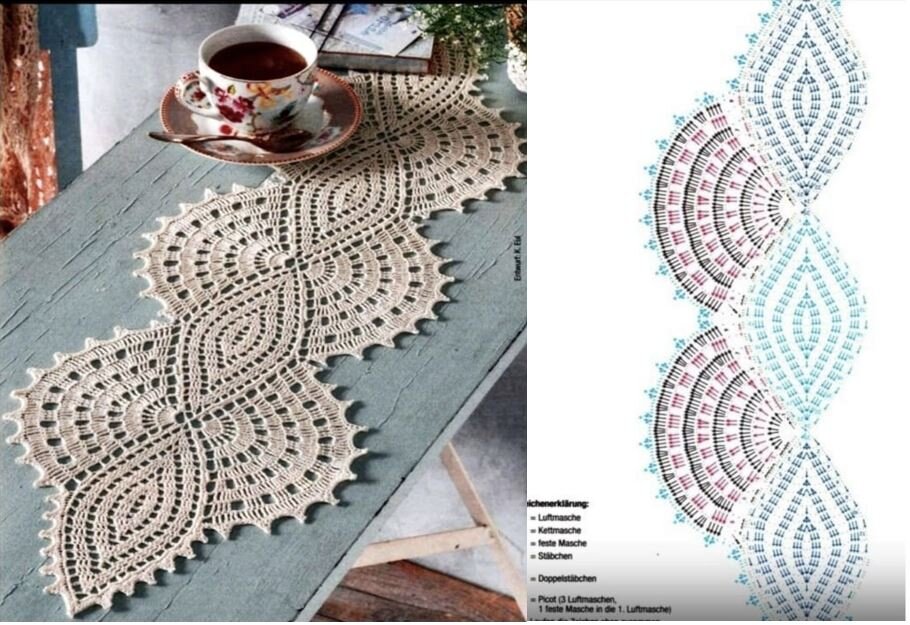 Не круглая,а в форме дорожки. Мастер класс+схема:"как связать эффектную салфетку для интерьера".
