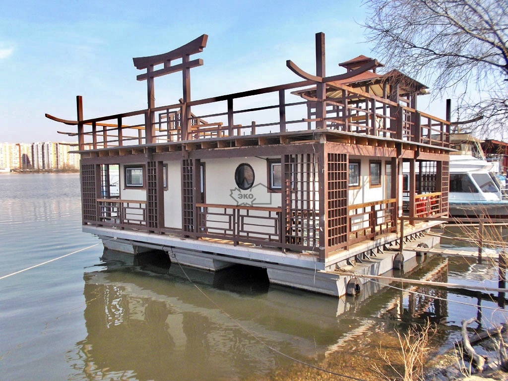 Сегодняшний рассказ об очень необычном проекте, от реализации которого отказались многие наши конкуренты. Экодомстрой же взялся за него с удовольствием, потому что нестандартные решения — это бесценный опыт! Нам посчастливилось реализовать проект «Дом на воде». Когда заказчик обратился к нам, и мы сказали: «Да, мы это сделаем», - первое, что мы услышали от него в ответ: «Ребята, вы крутые, четверо ваших конкурентов отказались почти сразу!» Конечно, сам дом – это не плавучее средство. Но если его поставить на понтоны, он вполне может передвигаться при помощи буксира по воде! Достаточно оригинально, согласитесь? У нашего заказчика была давняя мечта. Он всегда хотел жить в небольшом домике на воде. Но классические варианты применения материалов для плавучих средств его не устраивали. Более того он хотел проект «с изюминкой», в китайском стиле! Технология СИП идеально подошла для реализации такого замысла. Ведь конструкция очень легкая, а значит понтоны можно делать небольшие. А поско