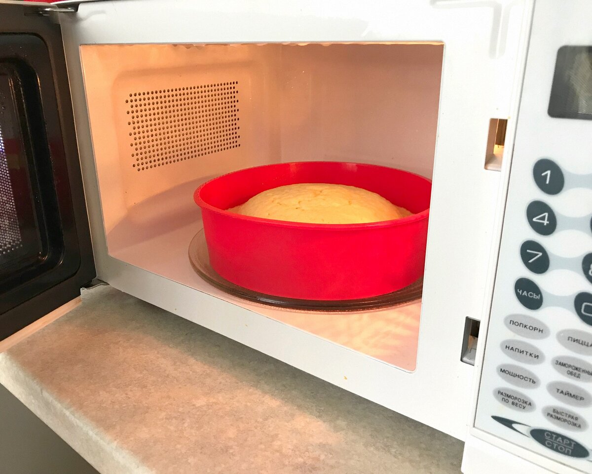 Если нет возможности испечь бисквит для торта в духовке или мультиварке, на помощь придёт этот рецепт. Такой бисквит отличается от традиционного из духовки и по составу, и по структуре, но несмотря на это вполне выдерживает конкуренцию. Очень даже достойный вариант для приготовления торта. Учитывая, что готовится он всего 6 минут — этот рецепт вообще подарок. Ингредиенты: Сахар — 5 ст. л. Яйцо — 2 шт. Мука — 8 ст. л. Молоко — 5 ст. л. Растительное масло — 5 ст. л. Разрыхлитель — 1 ч.л. Данное количество ингредиентов рассчитано на форму диаметром не больше 18 см. Если форма больше, количество ингредиентов, и соответственно время приготовление нужно увеличить. Приготовление: Всё смешиваем венчиком до однородной массы. Вот и всё, тесто готово. Выкладываем тесто в силиконовую форму и убираем в микроволновку. Готовим бисквит 6 минут при мощности 700 Вт. Сначала ничего не происходит, но уже после третьей минуты бисквит начинается подниматься от краев к центру. Вытаскиваем бисквит из форм