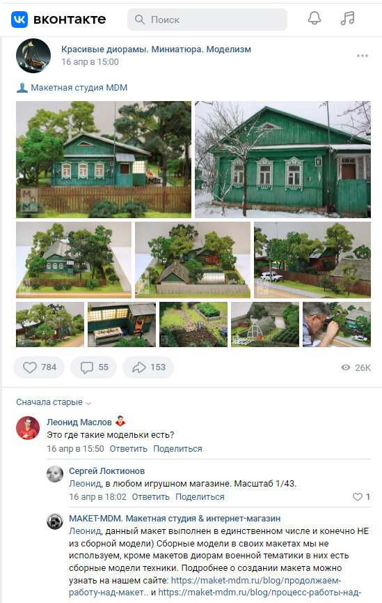 Сегодня мы хотели немного похвалиться) Несколько дней назад сообщество любителей макетов и диорам Красивые диорамы. Миниатюра. Моделизм поделилось нашей работой "Сельский дом" в масштабе 1:43 Подписчики сообщества очень тепло приняли эту публикацию! Несомненно нам это очень приятно! ) Спасибо всем за внимание к нашей работе! В связи с этим мы решили сегодня опубликовать видео данного макета (предлагаем смотреть со звуком получается достаточно атмосферно) Подробнее о создании макета можно узнать на нашем сайте: https://maket-mdm.ru/blog/процесс-работы-над-макетом-частного-дома-в-масштабе-143 https://maket-mdm.ru/blog/продолжаем-работу-над-макетом-частного-дома-в-масштабе-143 https://maket-mdm.ru/blog/итоговые-фотографии-макета-частного-дома-сельский-дом Если Вам понравилась публикация, подписывайтесь на наш канал, чтобы быть в курсе последних новостей макетной мастерской MAKET-MDM #изготовлениемакетов #макетнаямастерская #макетмдм #maketmdm #заказатьмакет #макетыназаказ #миниатюра #mi