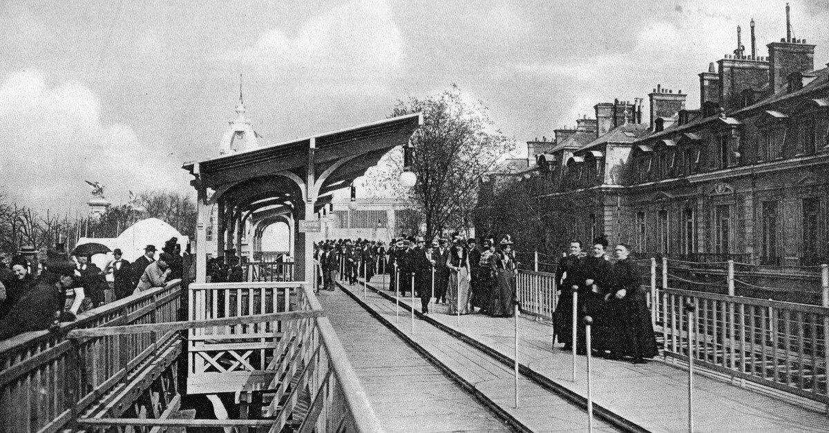 В 1900 году на Всемирной выставке в Париже, одним из представленных на ней чудес был движущийся электрический тротуар. Это особое сооружение, двигающееся непрерывно, без остановок. Длина этого тротуара около 2,5 мили. Он состоял из трех платформ. Две платформы двигались - одна с небольшой скоростью, вторая вдвое быстрее, а третья платформа была фиксированной.
