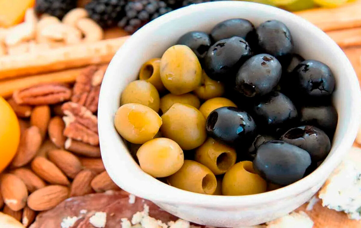 Оливки и маслины — это плоды одной и той же оливы (масличного дерева). Зеленые оливки — недозрелые плоды, а маслины — готовые. Оливки созревают к октябрю, и до декабря меняют свой цвет с зеленого на черный от желтого, розового до насыщенного фиолетового. Кстати, «маслинами» оливки называют россияне и украинцы, общепринято это чёрные (black olives) и зелёные оливки (green olives). Свежие плоды не употребляются в пищу из-за содержания горького вещества олеоуропеина. Чтобы оливки стали съедобными, исторически их замачивали в солёной воде: за полгода горечь удалялась из зрелых оливок и за более, чем шесть месяцев, становились пригодными зелёные. Учёные сократили эти сроки до нескольких дней, добавляя к рассолу щёлочь. Большая часть оливок в магазинах продается в жестяных банках, производители: Испания, Италия, Греция, Аргентина. Но самое интересное в оливках — это их состав. СОСТАВ ОЛИВОК И МАСЛИН Оливки — это 56% жиров, 23% воды, 9% клетчатки и 6% белков. Плоды богаты витаминами А, группы