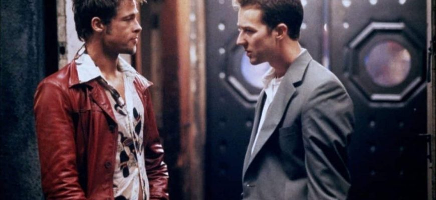 «Бойцовский клуб» — это фильм снятый в 1999 году Дэвидом Финчером. В основу сюжета лег роман Чака Паланика, писателя, чьим узнаваемым почерком является огромное количество шок-контента и ярко выраженный нонконформизм. Только выйдя в прокат, фильм не снискал популярности среди широкой публики. Слишком откровенным, слишком низвергающим все, что дорого среднему успешному человеку он был. Популярность фильм обрел только спустя 10 лет, когда в Нью Йорк Таймс, издании заслуживающем всяческого доверия в вопросах культуры, появился хвалебный отзыв на фильм, признающий его определяющим произведением кинематографа рубежа веков. В главных ролях снялись признанные, талантливые актеры (Бред Питт, Хелена Бонем Картер, Эдвард Нортон), набирающие в нулевых популярность с удивительной скоростью, что, при содействии одобрения известного издания, не могло не вызвать новый виток интереса к фильму. На данный момент он входит в десятку лучших фильмов по версии множества кинорейтингов.