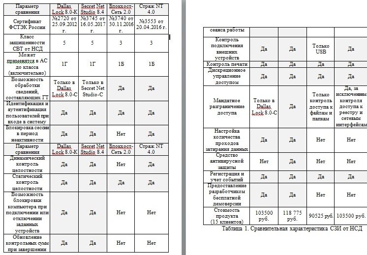 В этой статье будет изложен анализ сертифицированных средств защиты от несанкционированного доступа. На основе проведенной аналитической работы и практического тестирования СЗИ от НСД сопоставим полученные данные. В таблице 1 представлена сравнительная характеристика функциональных возможностей данных продуктов: ЗАКЛЮЧЕНИЕ Мы рассмотрели российский рынок сертифицированных средств защиты информации от несанкционированного доступа для конечных точек, увидели каким требованиям должны соответствовать СЗИ от НСД. Основным правилом рынка сертифицированных СЗИ от НСД является необходимость выполнения требований действующего законодательства и нормативных актов в области защиты информации. В приведенном сравнении СЗИ от НСД я провел их итоговое ранжирование по основным функциональным возможностям. Каждое средство имеет свои положительные стороны и недостатки. Тем не менее, конечную оценку программным продуктам должен дать заказчик, ведь в каждом конкретном случае он сам определяет требования к