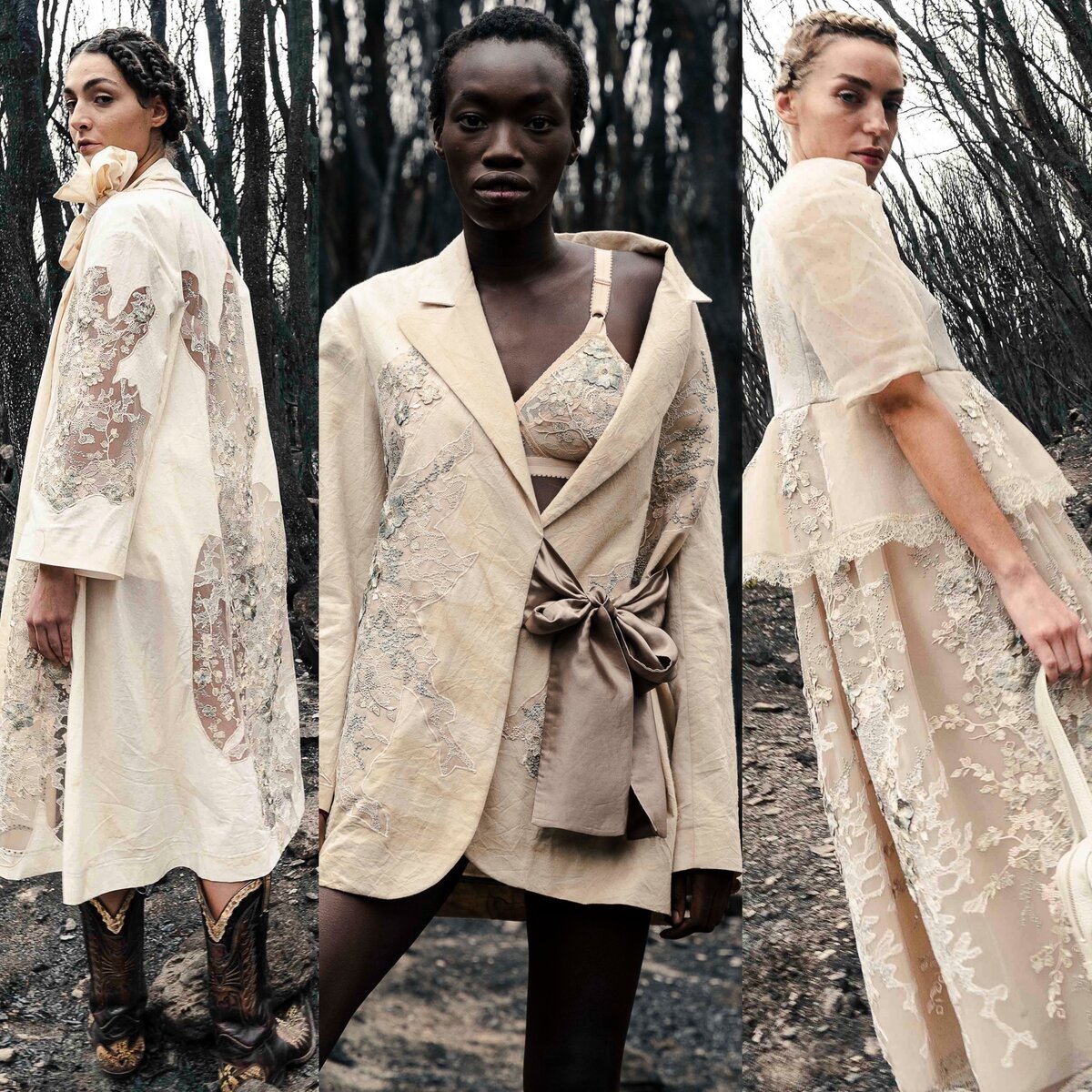 Коллекция SS’22 RTW великолепна! Но глядя на все эти выжженные деревья на заднем фоне, сжимается сердце. Да, безусловно, в наше время сердце уже буквально устало сжиматься от перипетий и кошмаров, но каждая трагедия будоражит по новой. Смотришь на эти изысканные кружевные лёгкие одежды на фоне мёртвой земли и думаешь, о господи, как же хрупка жизнь!