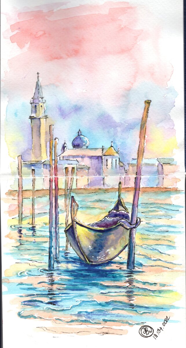 К подобному можно отнести быстрые зарисовки в пути или пленеры или рисование непривычными материалами или в непривычной технике. Мои недавние пробы рисования акрилом фактурной картины - необычны, даже тяжелы для меня, но очень интересны и вдохновляюще-яркие. А сегодня рисовала на развороте скетчбука - тоже непривычно и даже тяжело, так как "линия" где одна бумага заканчивается, а вторая начинается - о нее прямо спотыкаешься. Но занятие сделать хотелось, а под рукой ничего подходящего по размеру не было. Это по видео от школы рисования Dream&Draw. Правда там были закатные краски, а у меня получился скорее рассвет, как мне кажется. А вот следующий рисунок почти фантазия: очень хотелось нарисовать то, что почти всегда завораживает и вдохновляет. И нарисовать как-то непривычно. Поэтому не касалась карандаша или линера, не использовала белую гелевую ручку, а просто попыталась передать водопады четырьмя оттенками: ультрамарин, церулиум, изумрудная и умбра жженая. Вот что вышло. Спасибо все