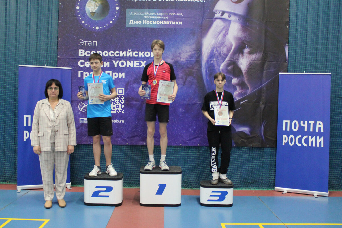 г. Санкт-Петербург, СЦ «Динамит», 11 -14 апреля 2022 г. РЕЗУЛЬТАТЫ http://www.badm.ru/news/badminton/4143 ТРАНСЛЯЦИИ https://www.youtube.com/playlist?list=PLe-yzAL8qFL4jUsYR01s-h5s_GQJKSAre ФОТОГАЛЕРЕЯ https://vk.com/album-72045720_283826425 Фото Федерации бадминтона Санкт-Петербурга Спонсор соревнований «Почта России» ПОБЕДИТЕЛИ И ПРИЗЕРЫ U15 - Мужской одиночный разряд 1 Семенов Валентин МСО 2 Переверзев Артем МСГ 3 Сно Александр МСГ 3 Черкасов Всеволод ЛГО U15 - Женский одиночный разряд 1 Тарасова Марина МСО 2 Новикова Мария МСГ 3 Грачева Анастасия СПГ 3 Шустова Софья СПГ U15 - Мужской парный разряд 1 Милехин Егор НСО/ Семенов Валентин МСО 2 Илькевич Илья МСО/ Чикин Степан МСГ 3 Алексеевич Филипп СПГ/ Кононенко Кирилл СПГ 3 Бушмелев Александр МСГ/ Переверзев Артем МСГ U15 - Женский парный разряд 1 Никитина Алина ЯРО/ Тарасова Марина МСО 2 Грачева Анастасия СПГ/ Зубарь Любовь МСГ 3 Бубенцова Софья МСГ/ Дмитриева Мария СПГ 3 Комарова Мария СПГ/ Шустова Софья СПГ U15 - Смешанный парный