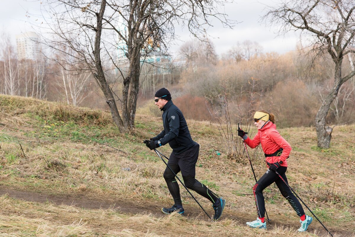 Имитация может выполняться с лыжными палками или без них. Движения повторяют движения при классическом попеременном ходе. Палки для имитации должны быть примерно на 5 см короче, чем ваши обычные лыжные палки для классического хода.