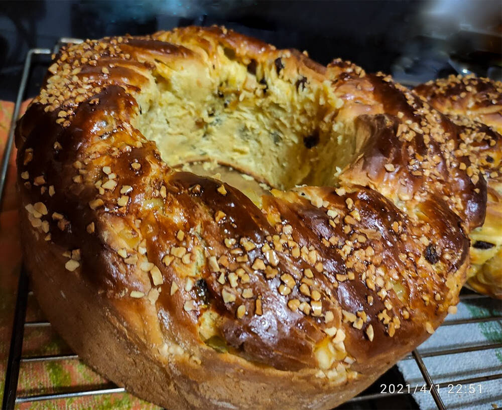 Не только "Остерн Брот" или Пасхальный Хлеб - Кулич пекут на Пасху - Остерн, но и венки, в середину которых складывают яйца. Сегодня я покажу вам такой Венок. Из этого тесто можно печь и Кулич Краффин. Кроме всех перечисленных ниже продуктов, мисок , нам понадобятся весы и миксер. Все ингредиенты комнатной температуры . Я покупаю био апельсины и био лимоны , тру цедру в сахарный песок и у меня всегда под рукой апельсиновый и лимонный сахар. Я всегда пеку только на свежих дрожжах, но дам и количество сухих Я делала в расчете на 1, 5 порции. #ольгригрецепт #выпечкасизюмом #праздники #пасха #кулич #выпечка #сладкаявыпечка #краффин Ингредиенты: Тесто 1:, Вода (около 38 градусов) , Дрожжи свежих или 2 г сухих, Мука..., Оставить подходить на 4 часа, Тесто 2: делаю через два часа, Опара (тесто 1)..., Молоко (около 38 градусов)..., Дрожжи свежих или 8 г сухих, Мука, Остальное:, Яйца (крупные), если мелкие, то 3, Яичные желтки, Сахар , Мука... + - 50 г (дополнительно), Соль... , Сливочное масло