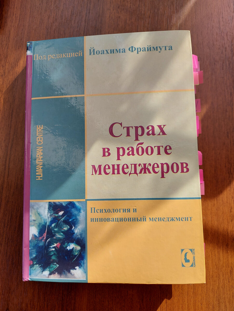 «Страх в работе менеджеров», сборник статей под ред. Йоахима Фраймута Несмотря на то, что на русском языке книга издана в 2005 году, а на немецком вышла в 1999, актуальность исследования роли и места страхов в деятельности и жизни руководителей не только сохранилась – она значительно возросла. А статья «Контроль страха в процессе интенсивного внедрения инноваций» хорошо бы смотрелась в качестве обязательного приложения к Программам инновационного развития / внедрения инноваций / цифровой трансформации. Тема страха руководителей строго табуирована. Оно и понятно: Акела испугался – это куда хуже, чем Акела промахнулся. Мы движемся в направлении отрицания страха: исключаем психоэмоциональные нагрузки из СОУТ руководителей, зачищаем лексикон, заменяя страх, тревогу и опасения управлением рисками, управлением изменениями, стрессоустойчивостью. Усиленно штукатурим трещины на фасаде, штопаем тонкими нитками разломы несущих конструкций. В этом нам помогают Модели компетенций, составленные, по