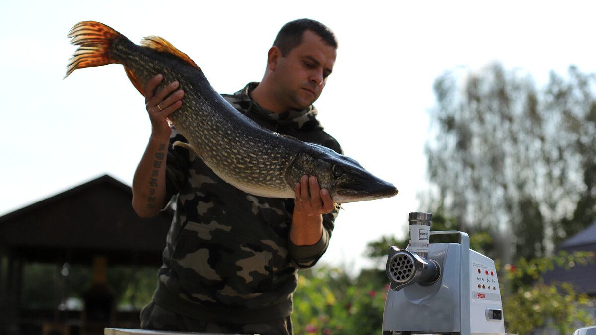 Всем привет, знакомый рыбак угостил щукой на 7 кг. Однозначно было принято решение готовить те самые котлеты из щуки с салом. Подробно сегодня расскажу как приготовить. Щука у меня на 7 кг, поехали! Начинаем с рыбы, хорошо промываем и потрошим(потом снова промываем). Возле головы заходим ножом и срезаем филе щуки. Так делаем с обеих сторон. Вот что у Вас должно получится. Голову, хребет и хвост оставляем на уху. Далее ножом срезаем ребра, они нам не понадобятся(пойдут также в уху). Теперь берем вилку и я беру филейный нож(мне им удобней работать). Вилкой придерживаем кожу щуки с краю, ножом срезаем по коже филе. Так совсем забыл. По мимо щуки нам сегодня потребуется: Сало Молоко Батон Укроп Соль Лук Перец Растительное масло Мука пшеничная Мука кукурузная Панировочные сухари Батон заливаем молоком. Нарезаем все продукты крупно, что бы поместились в мясорубку. На 3 кг филе щуки я добавляю 20-25% сала и 10-15% батона. Когда я на даче готовлю(особенно рыбу), то под столом у меня в
