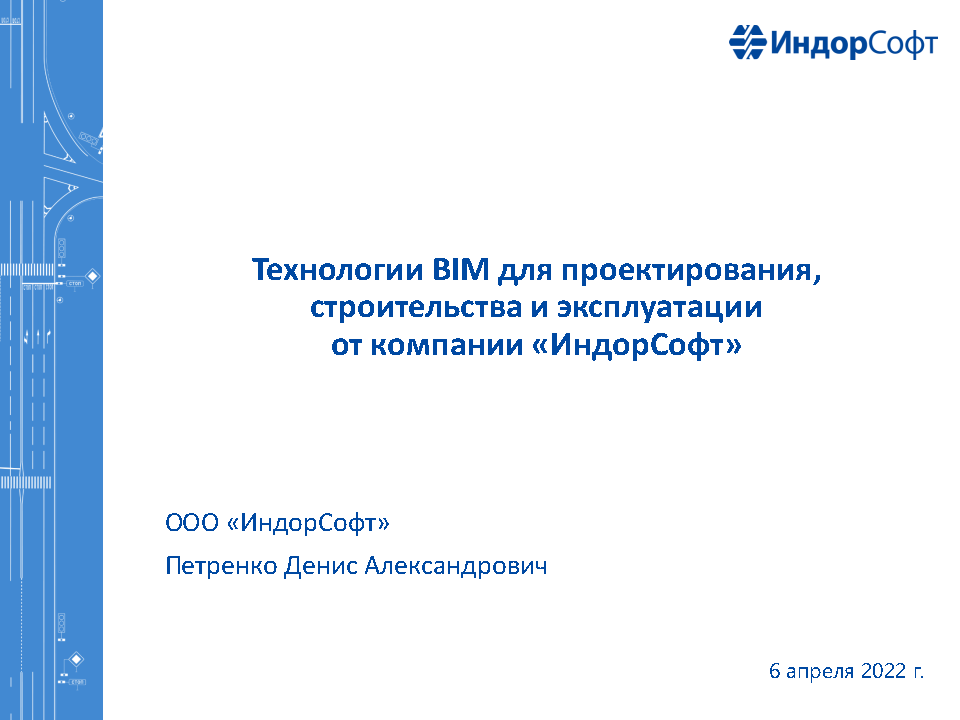 Презентация Петренко Д.А. к вебинару 06.04.2022г. Технологии BIM для проектирования,строительства от компании «ИндорСофт»