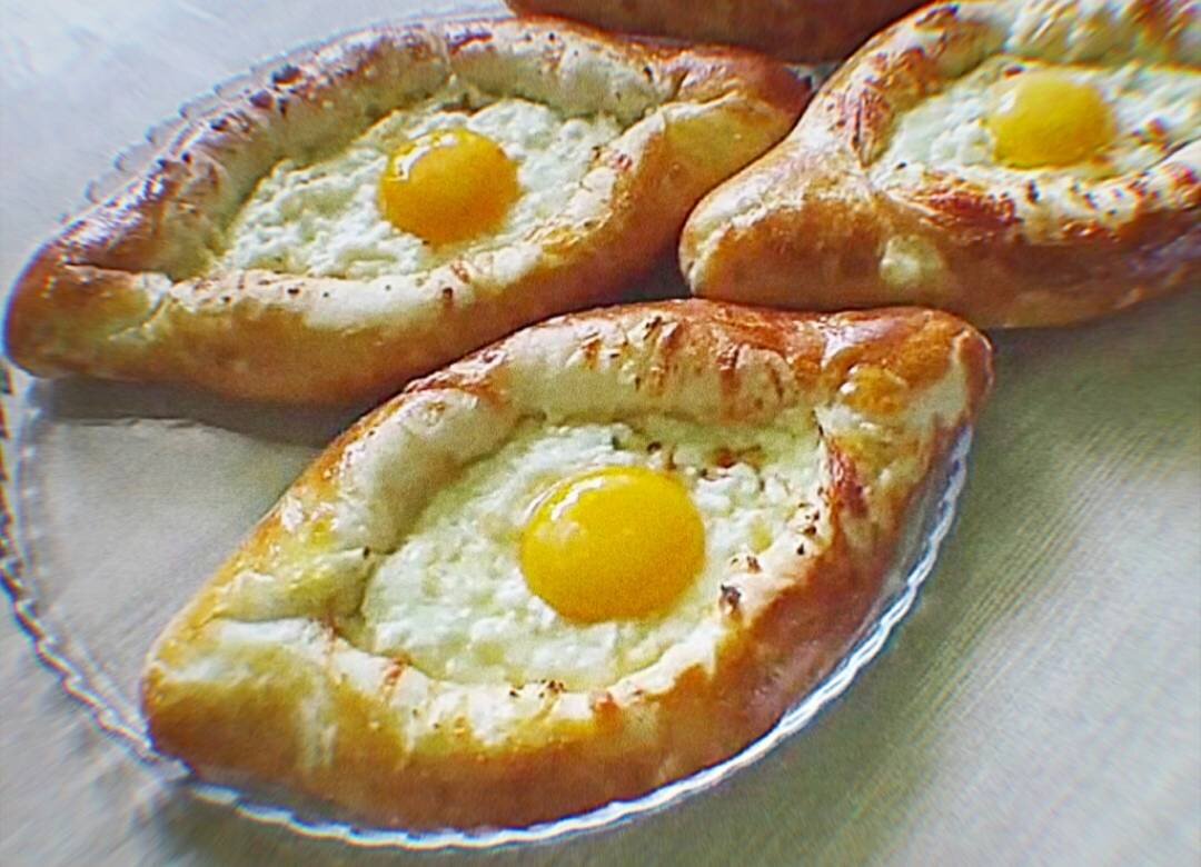 Ингредиенты: муки, воды, соли, сахара, инстантных дрожжей, сыр сулугуни, сыр адыгейский (в идеале имеретинский), желтки