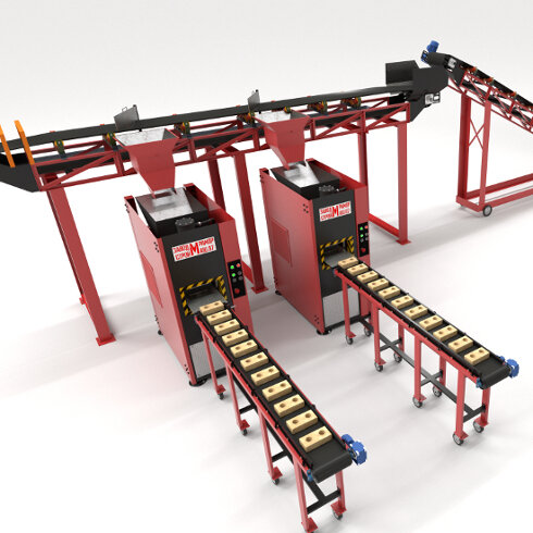Сегодня речь пойдет о кирпиче, окрашенном по технологии ColorMix, и прессе для кирпича с цельно-стальной рамой Гранит. Кирпич ColorMix - другое название "кирпич под мрамор". Для получения мраморного кирпича в бункер с заслонкой засыпаются смеси 2-3 цветов (возможно использование 4 цветов). Смесь не успевает перемешаться и опускается в бункер пресса. Заслонка работает по принципу "мебельного ящика", т.е. просто выдвигается. Смесь прессуется и получается кирпич с имитацией мрамора. Информация для тех, кто собирается покупать оборудование для производства кирпича: начиная с 2019 года, мы производим прессы с цельно-стальной рамой. Рама - это основа пресса, на нее устанавливаются гидроцилиндры и оснастка. Материалом для цельно-стальной рамы служит специальная сталь марки 10ХСНД. Листы толщиной 20 мм вырезаются на высокоточном лазере в форме вытянутой буквы О и скрепляются между собой винтами. Плюсы цельно-стальной рамы заключаются в отсутствии механических сопряжений и сварных соединений,