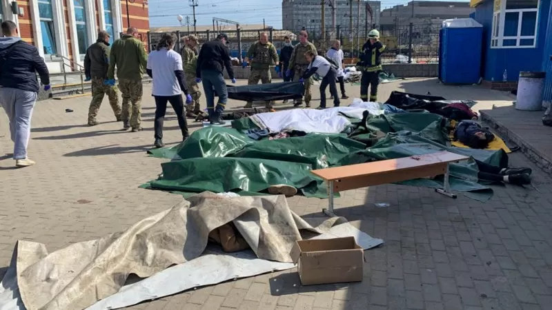 Как сообщает BBC news, по меньшей мере 39 человек погибли и более сотни получили ранения в результате ракетного удара по железнодорожному вокзалу в Краматорске Донецкой области. На вокзале в тот момент находились тысячи человек, пытавшихся покинуть город. Ранее Укараинская власть сообщала о подходе Российских войск к Луганской и Донецкой областям. С этим вероятно и связана загруженность вокзала в Краматорске. "Это целенаправленный удар по пассажирской инфраструктуре железной дороги и жителям города Краматорск", - пишет "Укрзализныця" В это же время Минобороны РФ исключило причастность России к ракетному удару по Краматорску «Минобороны России опровергает заявления киевского режима о якобы нанесении 8 апреля ракетного удара по железнодорожному вокзалу Краматорска. Все заявления представителей киевского националистического режима о якобы совершенной Россией 8 апреля «ракетной атаке» по железнодорожному вокзалу являются провокацией и абсолютно не соответствуют действительности»