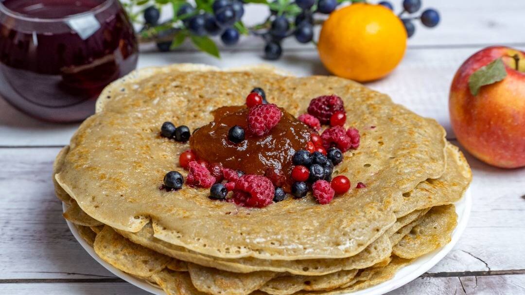 Отличный рецепт приготовления постных пшенично-гречневых блинов из дрожжевого теста, которые приятно удивят своими замечательными вкусовыми качествами! #пост Ингредиенты: Пшеничная мука, Гречневая мука, Сухие дрожжи , Сахар , Соль , Вода, Растительное масло Способ приготовления: Для приготовления теста выкладываем в большую миску 320 граммов пшеничной муки высшего сорта, 210 граммов гречневой муки, высыпаем в нее 0,20 чайной ложки соли, 1 столовую ложку сахара, 5 граммов сухих быстродействующих дрожжей и перемешиваем все сухие ингредиенты. Выливаем в миску с сухими ингредиентами половину от 750 миллилитров теплой кипяченой воды. Перемешиваем все ингредиенты в миске между собой и замешиваем дрожжевую основу для теста, в процессе замешивания добавляем в миску оставшуюся теплую воду и продолжаем замешивать до получения необходимого по консистенции дрожжевого теста, затем прикрываем миску с тестом крышкой и ставим ее в теплое место на 1 час. По истечении 1 часа хорошо перемешиваем тесто в