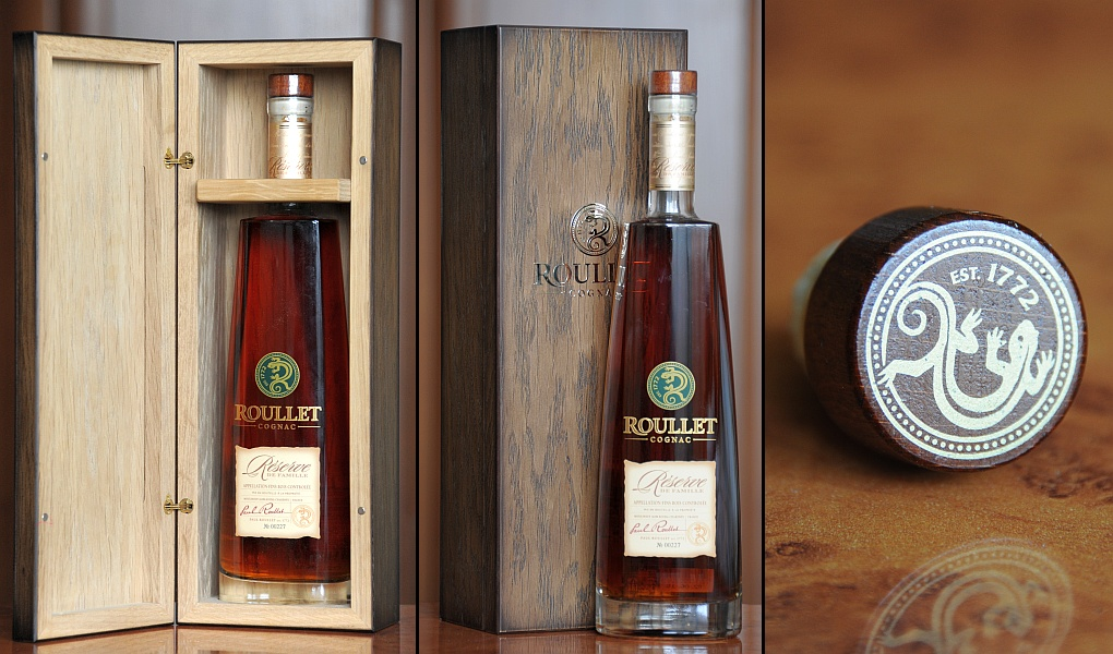 Мои читатели, всем привет! Продолжаем разбирать французские коньяки. Очередной обзор от моего друга El_gorra (текст и фото автора, ссылка на оригинал в конце обзора). Герой сегодняшнего обзора - Cognac Roullet Reserve de Famille Fins Bois. Maison de Negoce Charentaise Roullet Reserve de Famille Fins Bois Cognac. Топовый коньяк от Roullet. Серьезная скидка послужила наверное единственной причиной для приобретения этого раритета, поскольку серьезного опыта потребления напитков этого дома не было, да и особой аурой как-то он не отмечен. По слухам основу спиртов составляют семейные запасы 40-летней выдержки. Интересное, необычное оформление – вытянутая на подобие эльзасской флейты бутылка, при этом – четырехгранная; расширяющийся низ, слегка напоминающий вытянутую вверх флягу. Не стандартно, точно запоминается, это да, но и эргономически очевидно неудобно – это тоже факт. Скромная размерами, со стилизацией под старину основная этикетка золотисто-охренного цвета. Бутылка упакована в шикарн