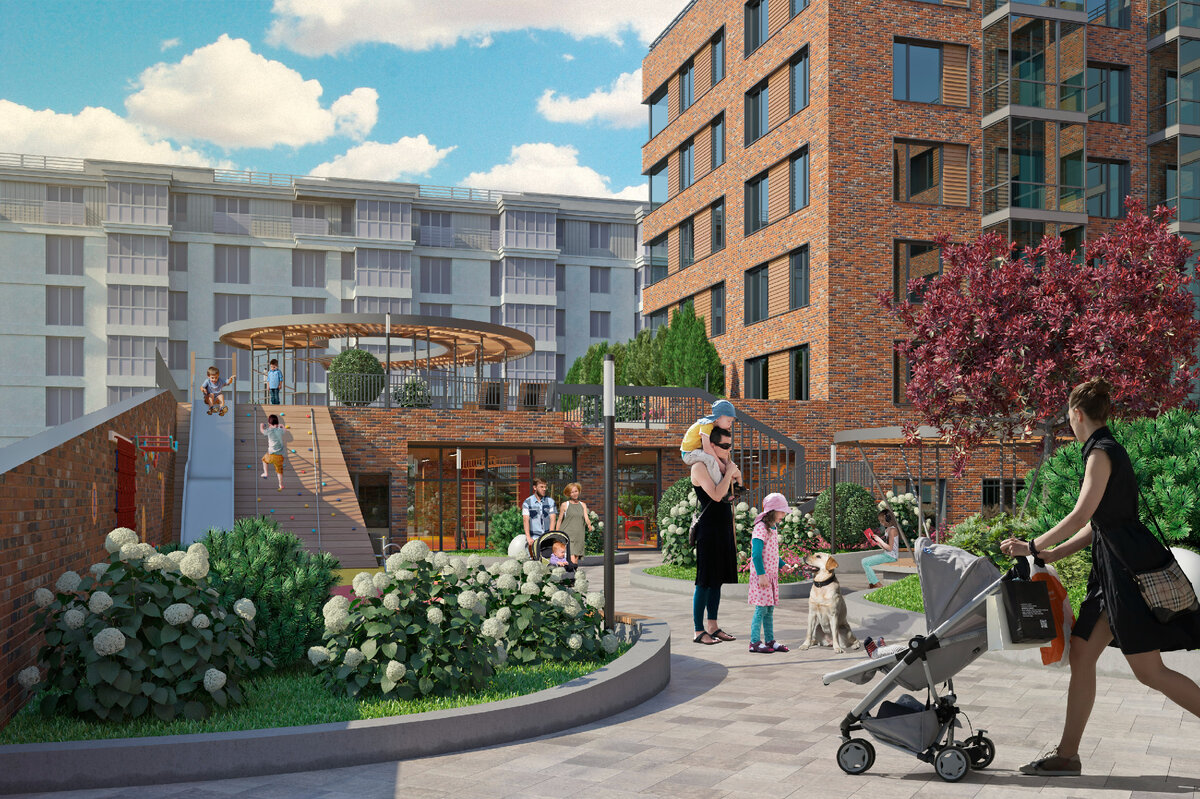 По статистике, самая многочисленная категория среди покупателей жилья в новых домах — это семьи с детьми. По этой причине застройщики много внимания уделяют проработке дворовых пространств и детских площадок. Это похвально, однако давайте рассмотрим наполнение этих территорий более тщательно — всё ли отвечает вашим требованиям? Приватность под защитой Концепция закрытого двора — в настоящий момент это правило хорошего тона для современных жилых комплексов. Открытый доступ внутрь должен быть только у жителей конкретного ЖК и необходимых служб, никаких посторонних. А значит, и для самых юных жителей созданы надежные условия, которые позволят им передвигаться без рисков, даже не находясь под постоянным присмотром. Как и для мам с колясками — в правильно спроектированном дворе, помимо отсутствия автотранспорта, обязательно должны быть предусмотрены пандусы и безбарьерная среда. Ведь главное — это безопасность жителей. Динамика с комфортом Игровые зоны для детей во дворе — это целый собств