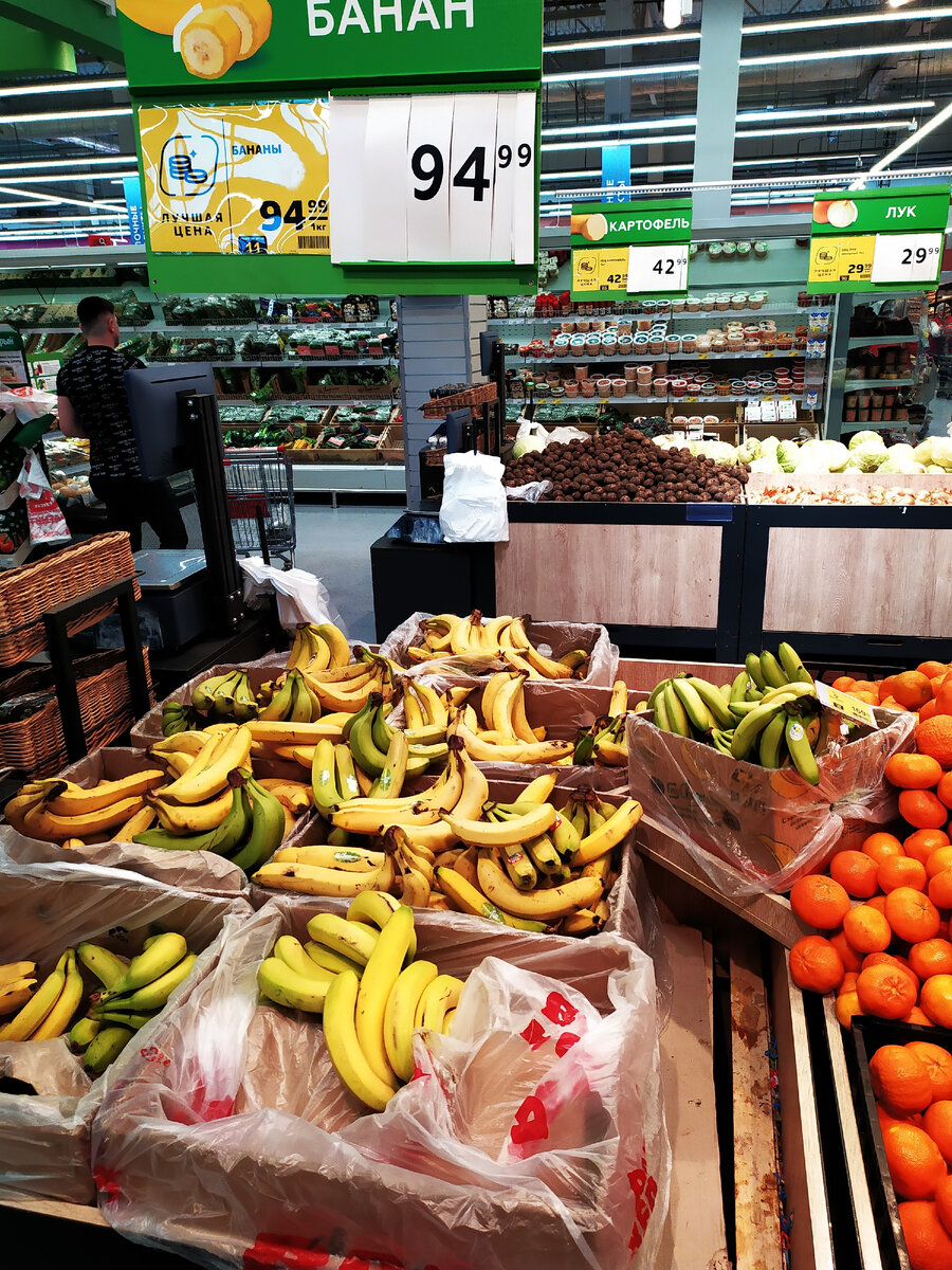 В эти выходные хотим пожарить немного шашлыка с друзьями и я заехала в наш гипер "Магнит", где любое мясо есть в продаже. В моём случае интерес был только в свинине и других продуктах, а вот замеченные мною цены, весьма многих озадачили. Предлагаю вашему вниманию обзор из "Магнита в городе Крымск. Постоянно детям покупаю бананы, но сегодня они уже немного дороже. Цена 95 рублей за 1 кг. Зато непредсказуемо подешевел репчатый лук. Цена 30 рублей за 1 кг. Цены на капусту не сдаются и держатся несколько недель в районе 109 рублей за 1 кг. И так, охлаждённая свинина к выходным подорожала сразу на 30 рублей. Цена 287 рублей за 1 кг. В середине недели была гораздо дешевле. В лотке бедро цыплёнка бройлера. Цена 165 рублей за 1 кг, как и в "Светофоре". Купила 300 грамм салата "Винегрета". Цена 29 рублей за 100 грамм. Куриное яйцо столовое С 1. Цена 240 рублей за 30 штук. Местные тепличные огурцы. Цена 120 рублей за 1 кг. В продаже появился белый сахарный песок по цене 70 рублей за 1 кг. От цен