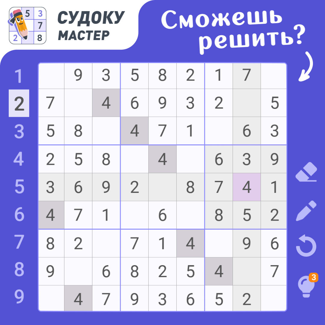 Сегодня как обычно вас ждет новый уровень в судоку! Если вы уверены в своих силах, то скорее переходите к игре и проходите новые уровни!