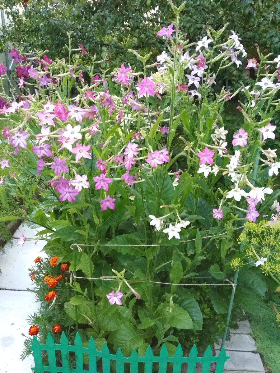 Мне нравится душистый табак, я сажаю его каждый год. Очень мне хотелось купить низкорослые сорта. Но сколько бы раз их не покупала, заявленные "до 40 см" превращались как минимум в 100, а то и выше. Я смирилась. Новых не покупаю, собираю семена со своих.