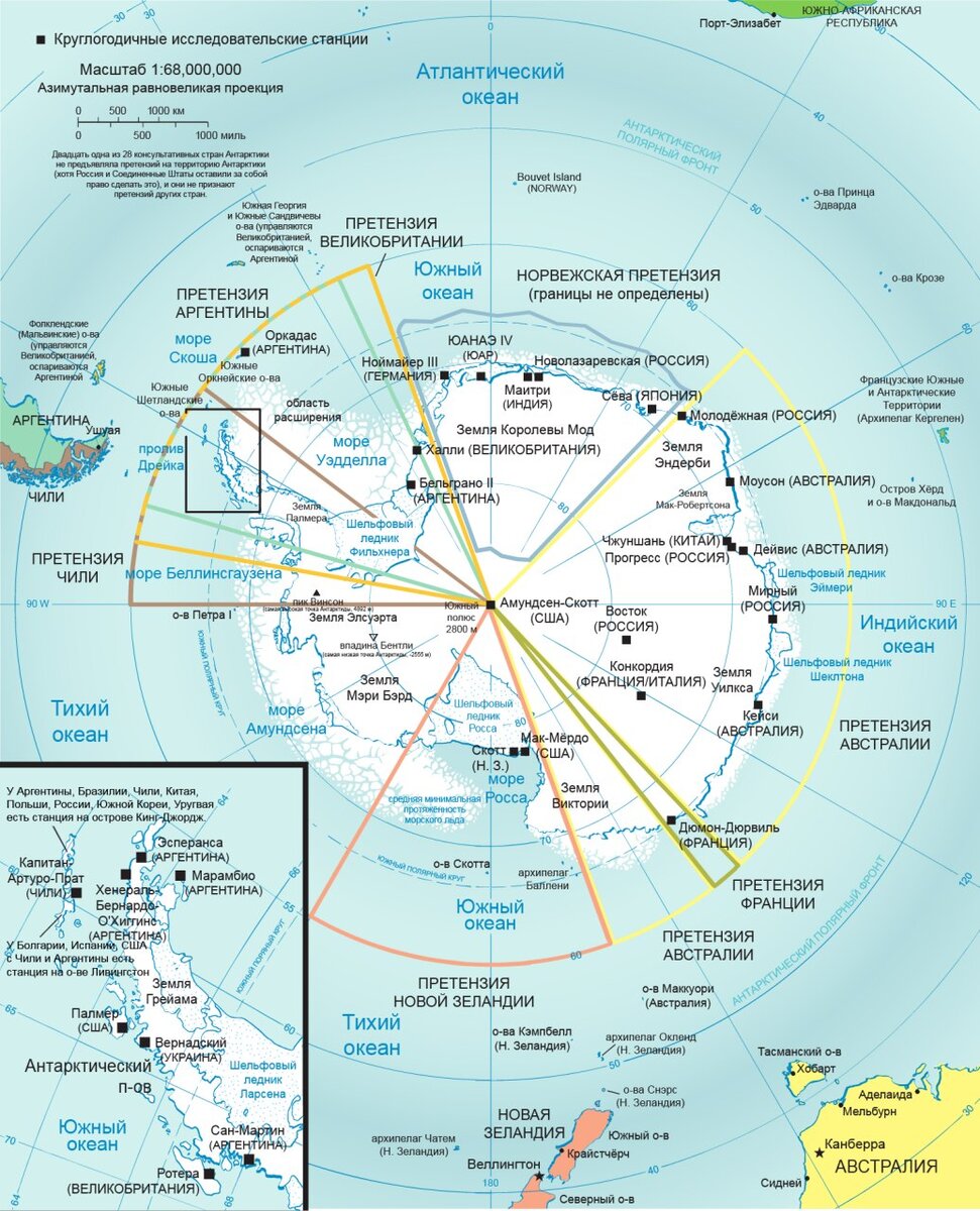 Свои претензии на территорию в Антарктике официально предъявили семь государств — Великобритания, Норвегия, Австралия, Франция, Новая Зеландия, Чили и Аргентина. Их оформили еще до вступления в силу Договора об Антарктике. Он был заключен в 1959 году , а вступил в силу в 1961 году. Он закрепляет статус-кво и запрещает выдвигать новые претензии и расширять старые. Эксперты выделяют три группы стран, по отношению к договору: ❄️ Имевшие территориальные претензии до его подписания — это Австралия, Аргентина, Великобритания, Новая Зеландия, Норвегия, Франция и Чили. ❄️ Оставившие за собой право на выдвижение таких претензий — это Перу, Россия, США и ЮАР. ❄️ Не имевшие официальных территориальных претензий — это Бельгия, Болгария, Бразилия, Германия, Индия, Италия, КНР, Пакистан, Польша, Румыния, Украина, Уругвай, Чехия, Швеция, Эквадор, Южная Корея и Япония. После вступления в силу Договора, некоторые страны периодически заявляют о своих претензиях неофициально — Эквадор, Перу, Бразилия, ЮА