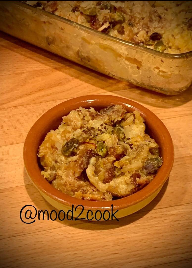Этот потрясающий десерт - настоящая восточная сказка! 👌 А приготовить его очень легко и просто и из всех доступных ингредиентов !!! Вперёд в сказку …. Кстати , если приготовить десерт в порционных формочках, то он будет очень здорово «в восточном» стиле смотреться на столе , но я готовлю в одной большой форме🤷♀️ #восточнаякухня Ингредиенты: Молоко, Сливки, Сгущённое молоко, Сахар, Шафран, Слоёное тесто (или круассаны 6 шт), Кокосовая стружка , Изюм , Миндаль (очищенный) , Фисташки , Масло сливочное для смазывания формы Способ приготовления: Тесто нарежьте квадратиками и запеките в разогретой до 200° духовке около 20 мин. дайте ему полностью остыть. В сотейнике смешайте молоко, сливки, сгущённое молоко и сахар. Добавьте щепотку шафрана. Прогрейте молочную смесь (не доводя до кипения) до полного растворения сахара. Орешки нарубите и смешайте с кокосовой стружкой и изюмом. Добавьте в молочную смесь и оставьте остывать. За это время кокос и изюм немного разбухнут. Смажьте форму для запе