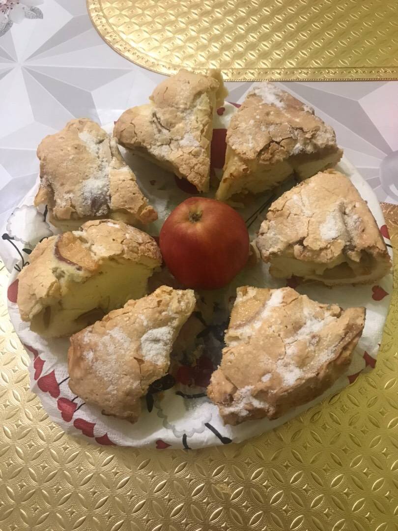 Это очень вкусно , тесто нежное, просто наслаждение за вкусной кружкой чашки чая 🥰🥰🥰 Ингредиенты: крупных яйца, крупных яйца 1 стакан. (210 г) сахара, муки, крупных яблока или 6-7 мелких Способ приготовления: Взбейте яйца, постепенно добавляя сахар и увеличивая скорость миксера. Взбивайте массу до пышности и посветления 3-5 минут. Долгое взбивание способствует образованию хрустящей корочки, как и нужное количество сахара. Если яблоки сладкие, количество сахара можно немного уменьшить. В любом случае, если корочки не будет, пирог будет очень вкусным. Постепенно добавляем муку и аккуратно перемешиваем до однородности на невысокой скорости. Форму застелить бумагой для выпечки и смазать дно маслом. Порезать в нее яблоки тонкими дольками. Залить тестом и аккуратно перемешать, чтобы тесто просочилось на дно и укутало яблоки. Выпекать в разогретой духовке 180° 40-50 минут, в зависимости от размера формы и духовки. Готовность проверьте зубочисткой, на ней не должно быть сырого теста. Если в