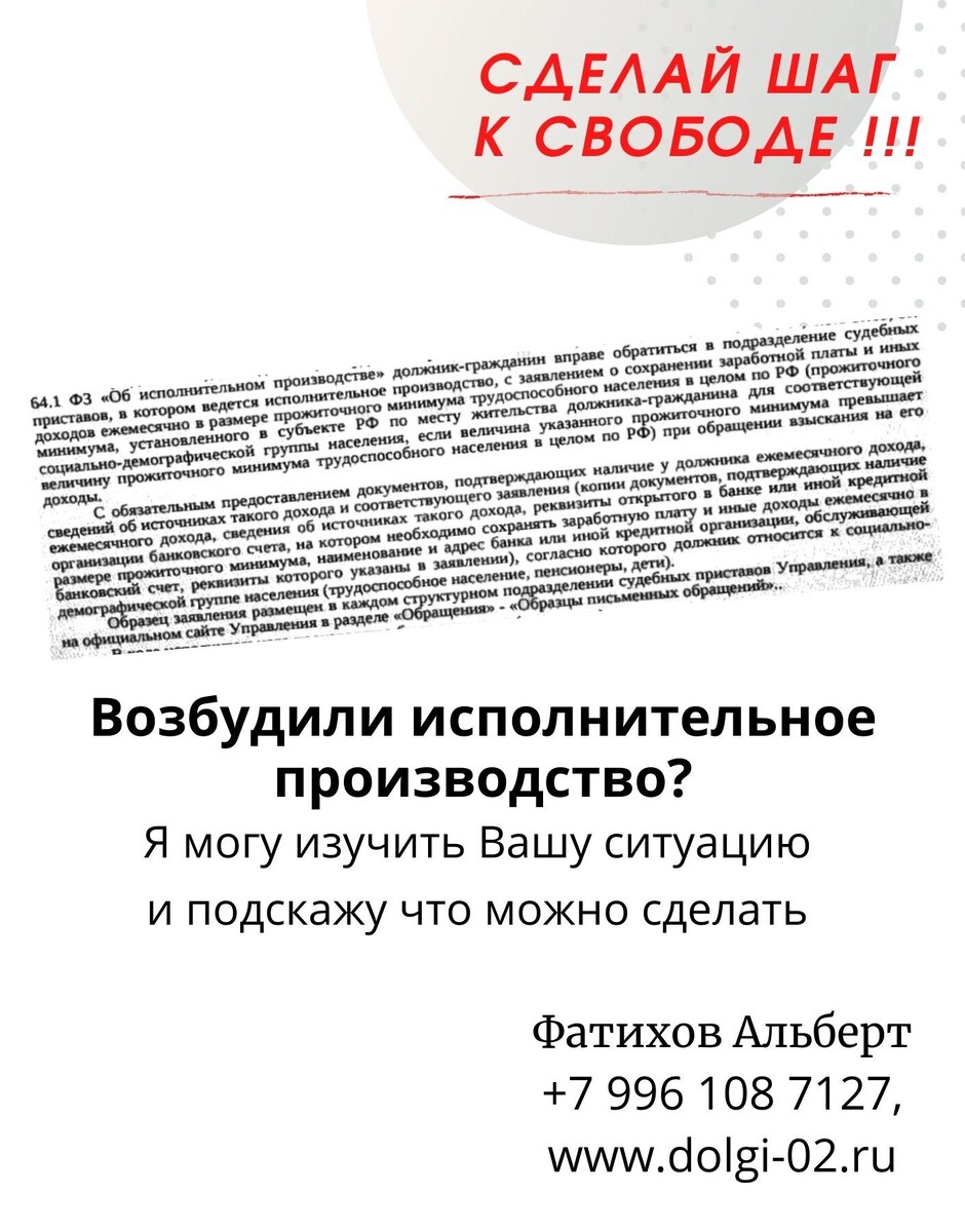 Обратитесь ко мне, окажу любую юридическую помощь на стадии исполнительного производства. В исполнительном производстве закон предполагает представителя. Я использую отлаженную модель работы за счет использования специализированной программы, которая обеспечивает полный контроль сроков задач и работ, информирует Вас о действиях по исполнительному производству на всех этапах.